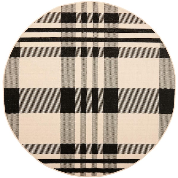 Courtyard Black/Bone 8 ft. x 8 ft. Plaid Indoor/Outdoor Round Area Rug