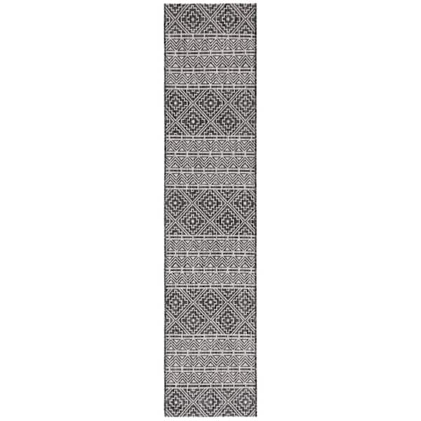 Courtyard Black/Gray 2 ft. x 10 ft. Tribal Diamond Chevron Indoor/Outdoor Runner Rug