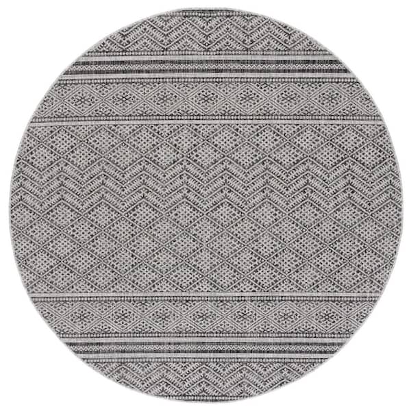 Courtyard Black/Gray 4 ft. x 4 ft. Chevron Tribal Indoor/Outdoor Round Area Rug