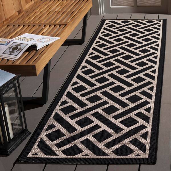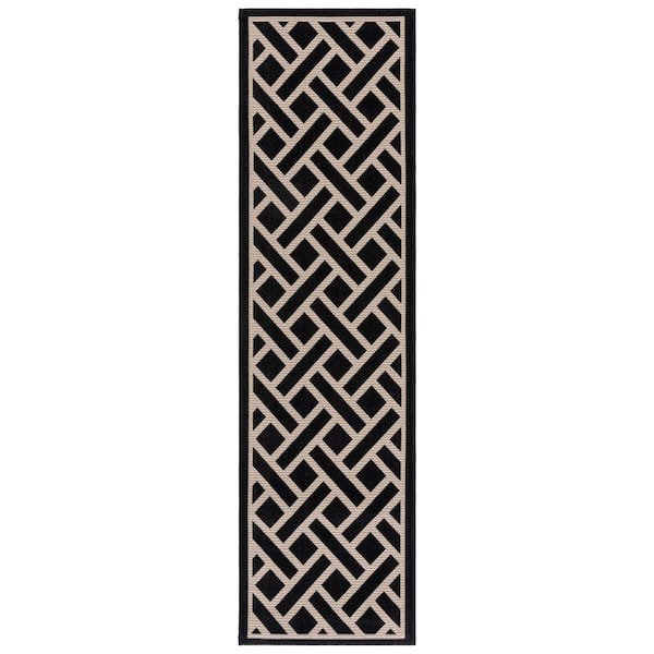 Courtyard Black/Light Beige 2 ft. x 8 ft. Geometric Lattice Indoor/Outdoor Runner Rug