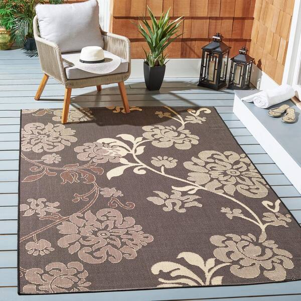 Courtyard Black Natural/Brown 8 ft. x 11 ft. Floral Indoor/Outdoor Patio Area Rug