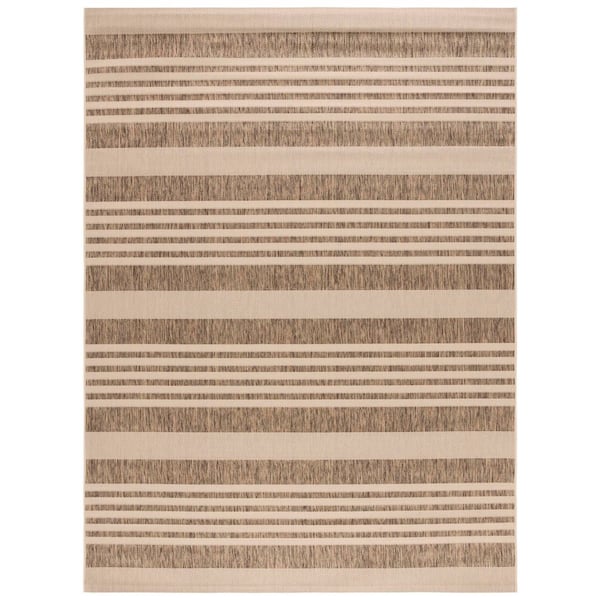 Courtyard Brown/Bone 10 ft. x 14 ft. Striped Indoor/Outdoor Area Rug