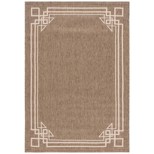 Courtyard Brown/Light Beige 5 ft. x 8 ft. Solid Geometric Border Indoor/Outdoor Area Rug