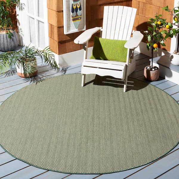 Courtyard Dark Green/Beige 7 ft. x 7 ft. Solid Color Chevron Indoor/Outdoor Round Area Rug