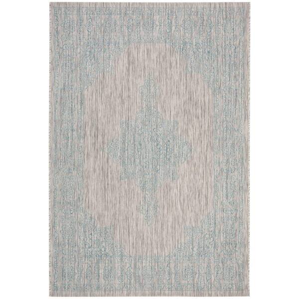 Courtyard Gray/Aqua 7 ft. x 10 ft. Indoor/Outdoor Area Rug