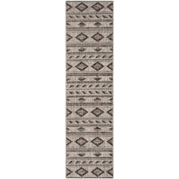 Courtyard Gray/Black 2 ft. x 20 ft. Striped Diamond Geometric Indoor/Outdoor Runner Rug