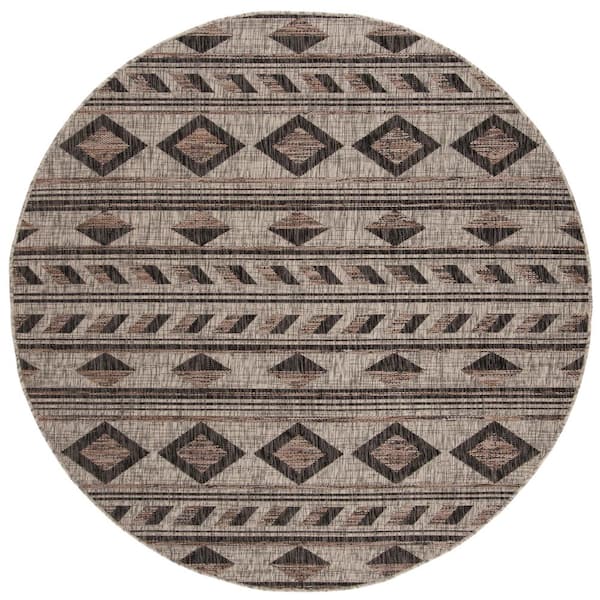 Courtyard Gray/Black 5 ft. x 5 ft. Indoor/Outdoor Round Area Rug