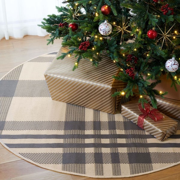 Courtyard Gray/Bone 5 ft. x 5 ft. Round Striped Indoor/Outdoor Patio Area Rug