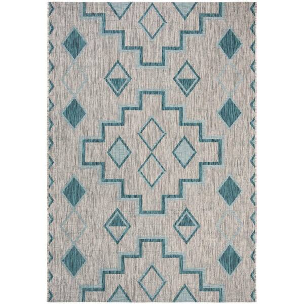 Courtyard Gray/Teal 5 ft. x 8 ft. Indoor/Outdoor Area Rug