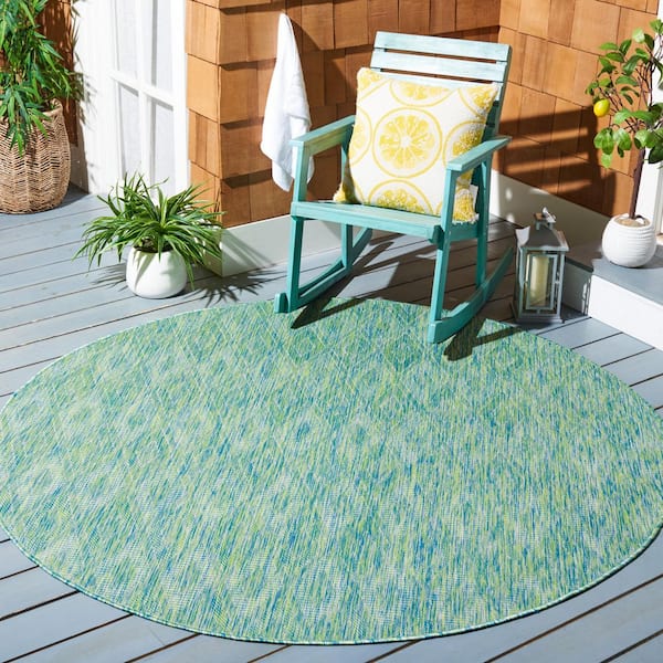 Courtyard Green 7 ft. x 7 ft. Solid Color Diamond Indoor/Outdoor Round Area Rug