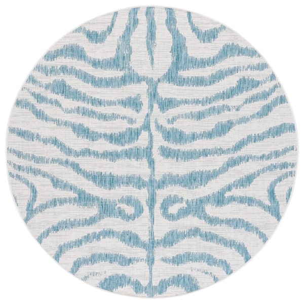 Courtyard Ivory/Aqua 7 ft. x 7 ft. Zebra Indoor/Outdoor Round Area Rug