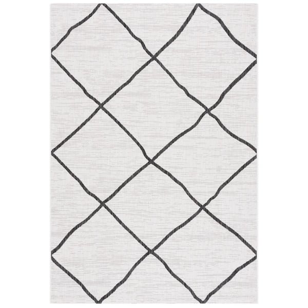 Courtyard Ivory/Black 4 ft. x 6 ft. Trellis Impression Indoor/Outdoor Area Rug
