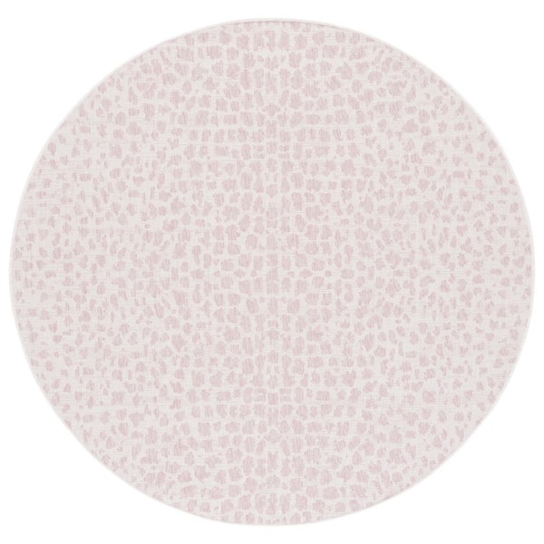 Courtyard Ivory/Blush Pink 7 ft. x 7 ft. Cheetah Geometric Indoor/Outdoor Round Area Rug
