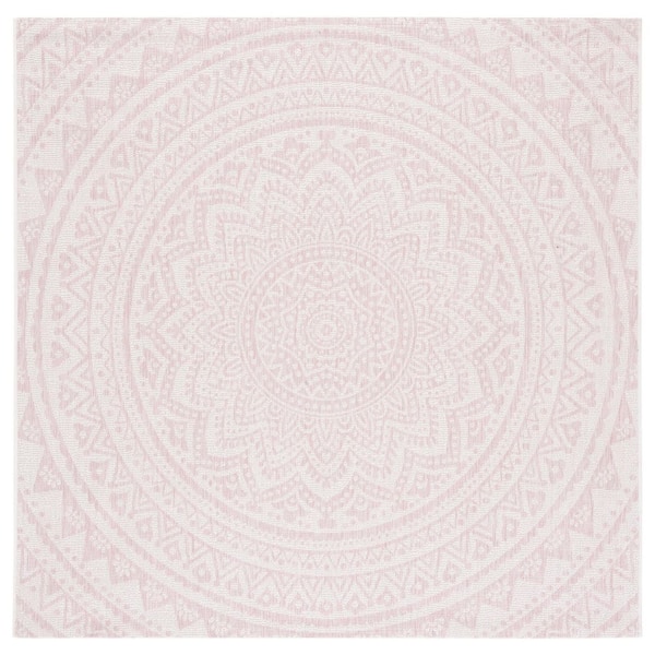 Courtyard Ivory/Soft Pink 7 ft. x 7 ft. Medallion Indoor/Outdoor Square Area Rug