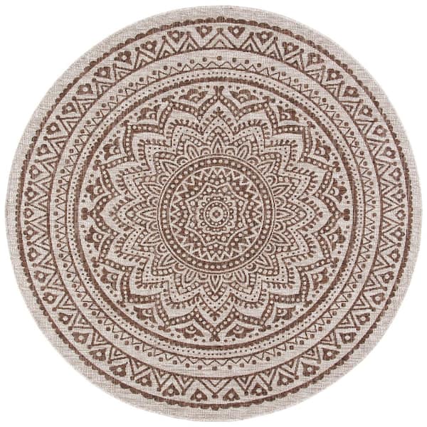 Courtyard Light Beige/Light Brown 5 ft. x 5 ft. Indoor/Outdoor Round Area Rug