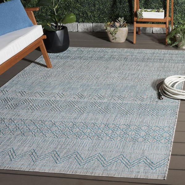 Courtyard Light Gray/Aqua 4 ft. x 6 ft. Striped Tribal Chevron Indoor/Outdoor Area Rug
