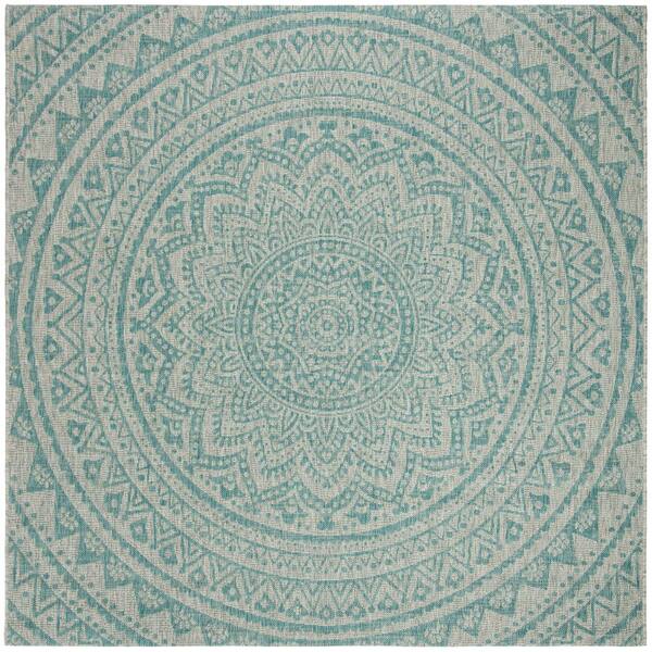 Courtyard Light Gray/Aqua 5 ft. x 5 ft. Indoor/Outdoor Square Area Rug