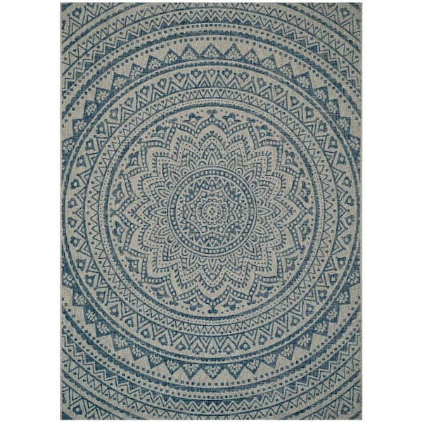 Courtyard Light Gray/Blue 9 ft. x 12 ft. Indoor/Outdoor Area Rug