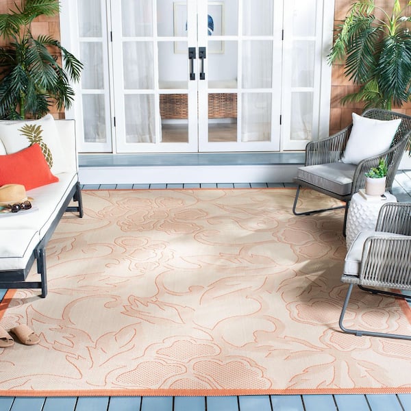 Courtyard Natural/Terracotta 5 ft. x 8 ft. Floral Indoor/Outdoor Patio Area Rug