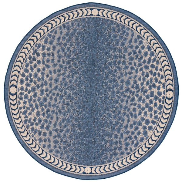 Courtyard Navy/Beige 7 ft. x 7 ft. Border Cheetah Indoor/Outdoor Round Area Rug