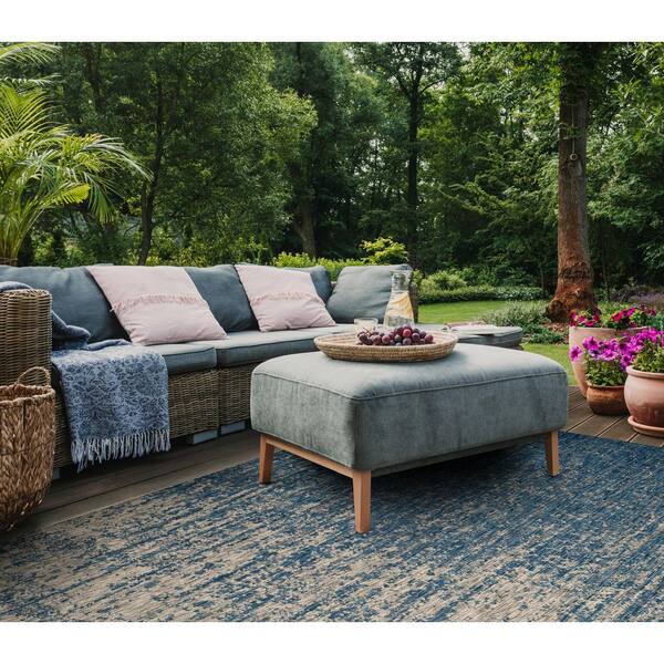 Courtyard Navy/Gray 5 ft. x 8 ft. Distressed Gradient Indoor/Outdoor Area Rug