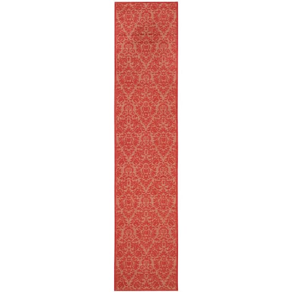Courtyard Red 2 ft. x 10 ft. Floral Indoor/Outdoor Patio Runner Rug