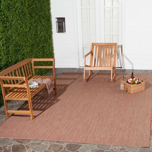 Courtyard Red/Beige 9 ft. x 12 ft. Solid Color Chevron Indoor/Outdoor Area Rug