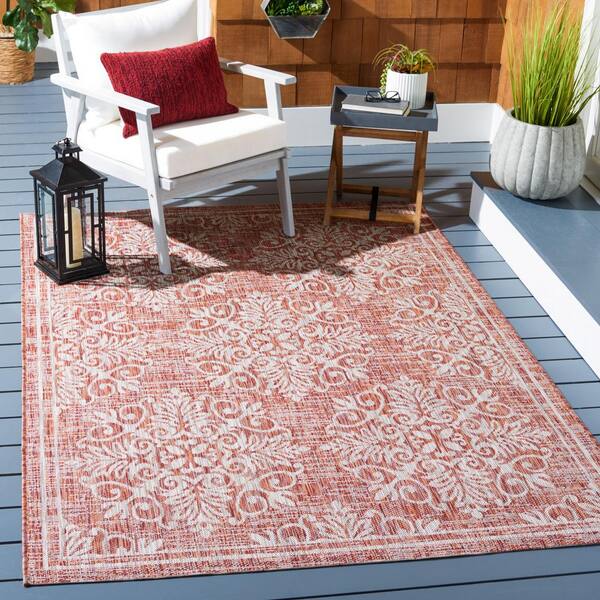 Courtyard Red/Ivory 5 ft. x 8 ft. Distressed Border Floral Indoor/Outdoor Area Rug