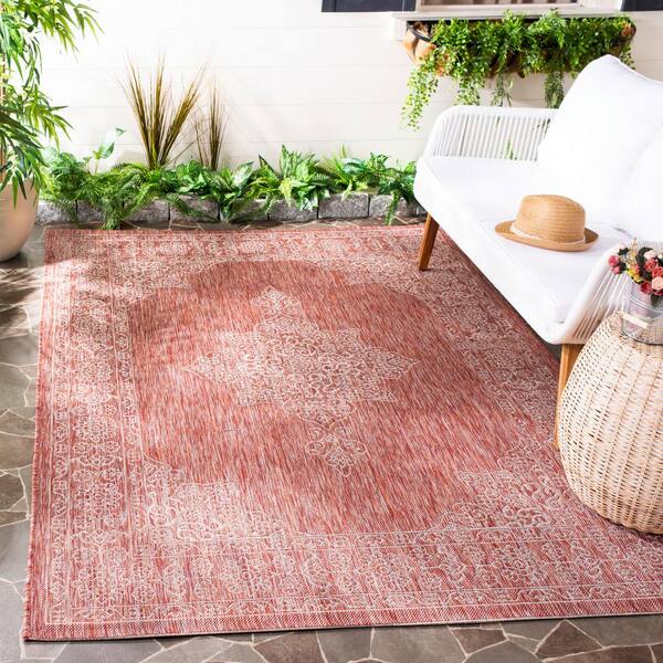 Courtyard Rust/Ivory 7 ft. x 10 ft. Indoor/Outdoor Area Rug