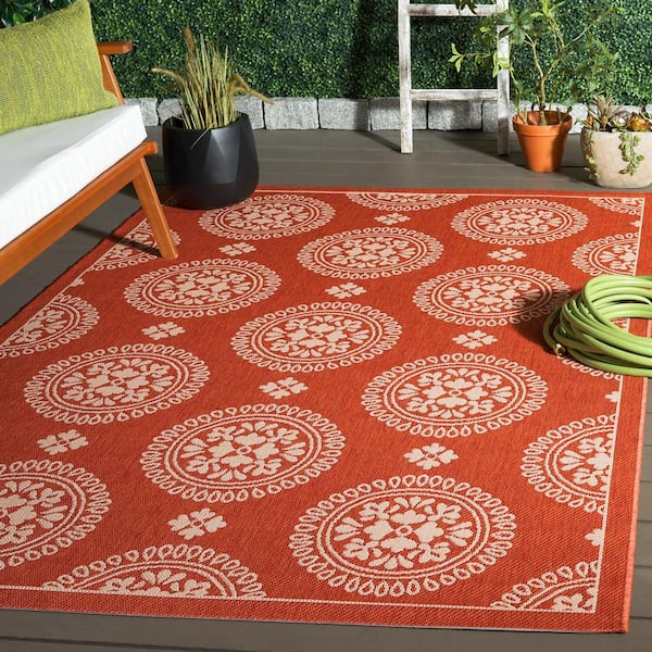 Courtyard Terracotta 7 ft. x 10 ft. Floral Geometric Indoor/Outdoor Area Rug
