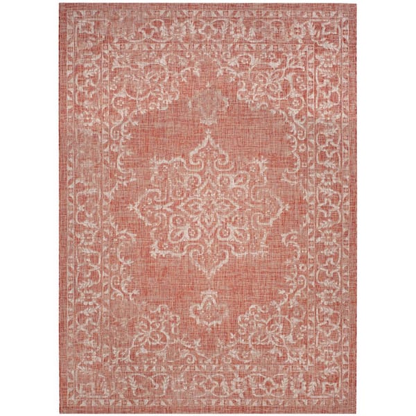Courtyard Terracotta/Beige 5 ft. x 8 ft. Border Ornate Indoor/Outdoor Area Rug