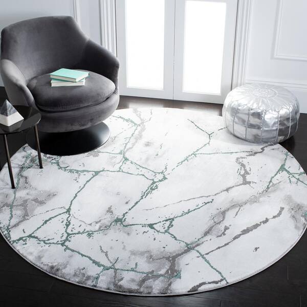 Craft 5 ft. x 5 ft. Gray/Green Distressed Abstract Round Area Rug