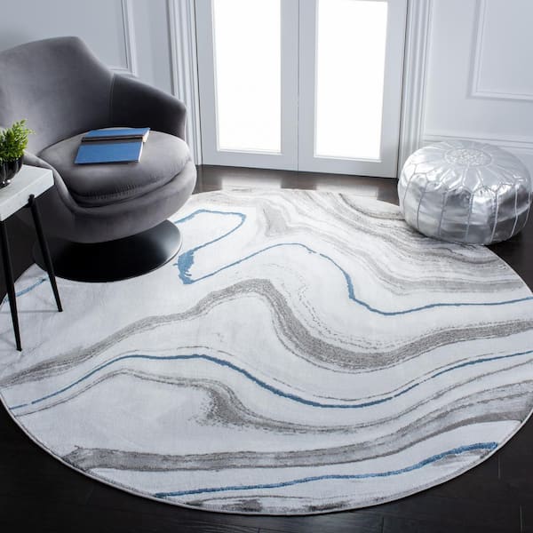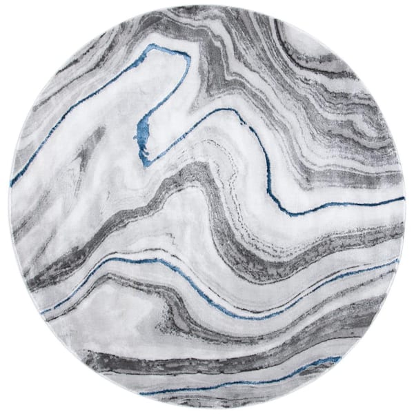 Craft Gray/Blue 9 ft. x 9 ft. Marbled Abstract Round Area Rug