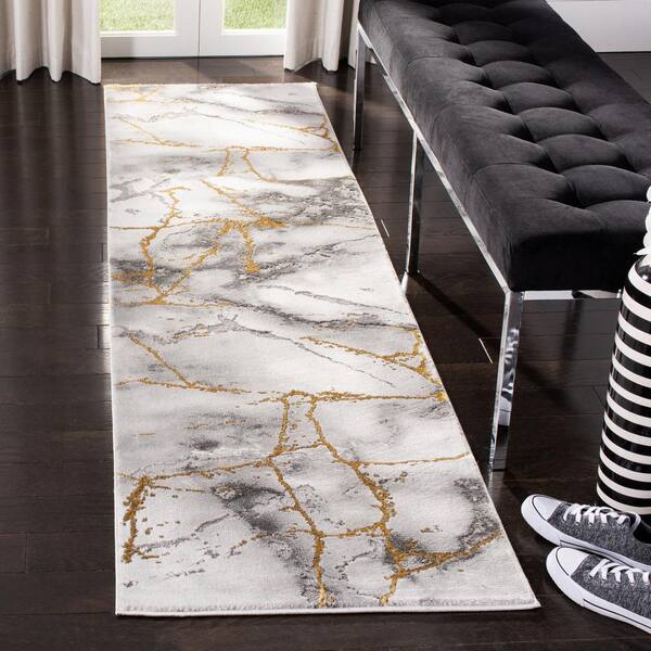 Craft Gray/Gold 2 ft. x 22 ft. Distressed Abstract Runner Rug