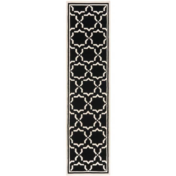 Dhurries Black/Ivory 3 ft. x 10 ft. Border Runner Rug