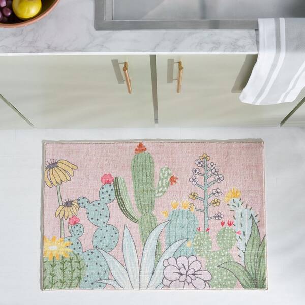 Door And Kitchen Mat Pink/Green 3 ft. x 5 ft. Machine Washable Desert Garden Area Rug
