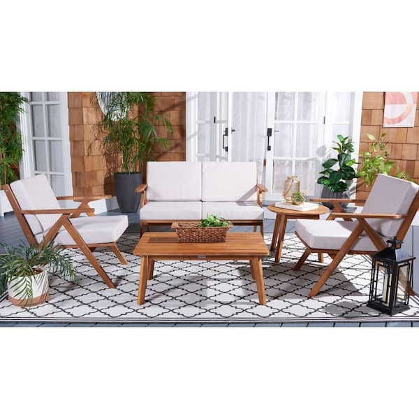 Dryad Natural 5-Piece Wood Patio Conversation Set with Light Gray Cushions