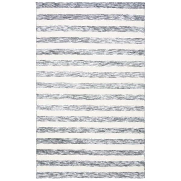Easy Care Grey/Ivory 6 ft. x 9 ft. Machine Washable Striped Abstract Area Rug