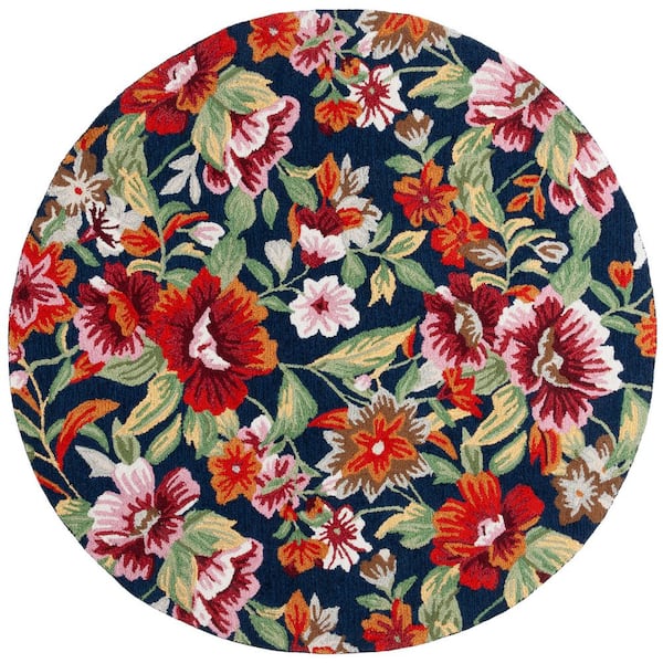 Easy Care Navy/Red 6 ft. x 6 ft. Abstract Floral Round Area Rug