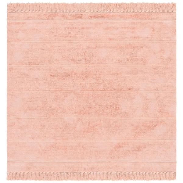 Easy Care Pink 6 ft. x 6 ft. Solid Striped Fringe Square Area Rug
