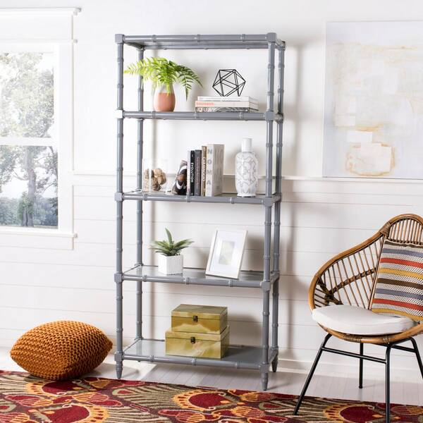 Ebo 78 in. Gray Bamboo 4-shelf Bookcase