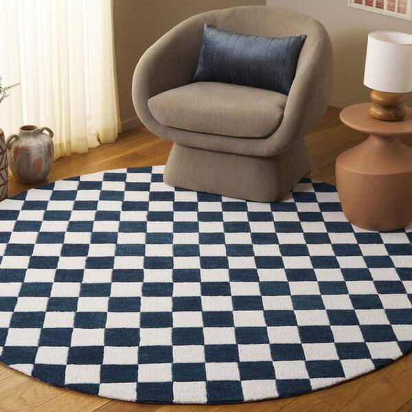 Ebony 6 ft. x 6 ft. Blue/Ivory Checkered Geometric Round Area Rug