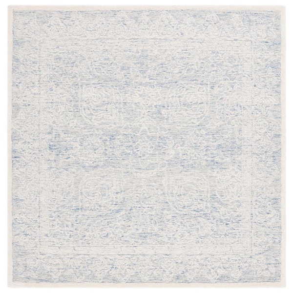 Ebony Blue/Ivory 6 ft. x 6 ft. Floral Square Area Rug