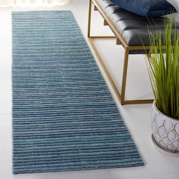 Elements 2 ft. x 9 ft. Aqua Striped High-Low Runner Rug
