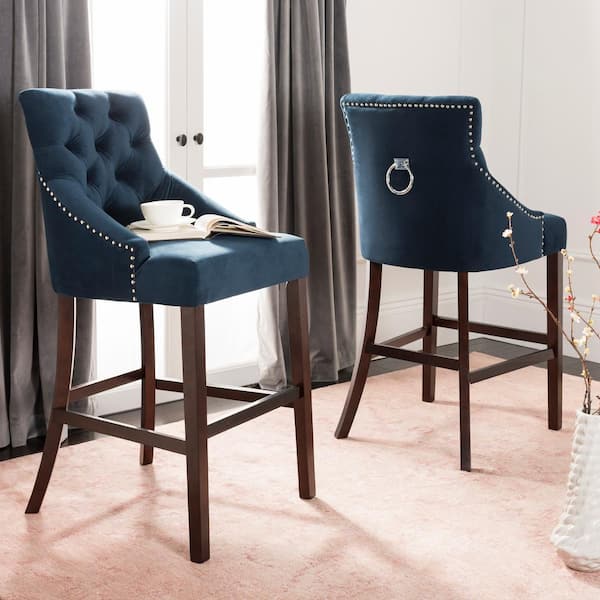 Eleni 30 in. Navy Wood Bar Stool (Set of 2)