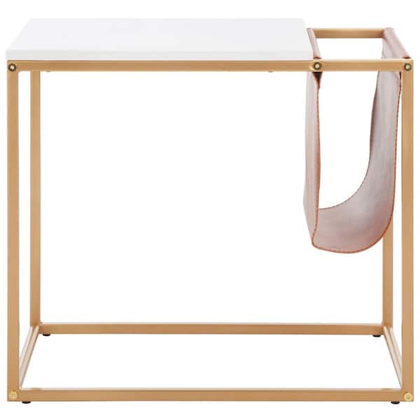 Eugenia 22 in. White/Brown/Gold Rectangular Faux Marble End Table