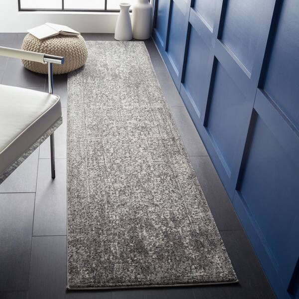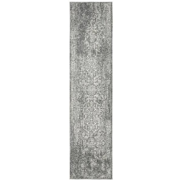 Evoke 2 ft. x 13 ft. Gray/Ivory Distressed Border Medallion Runner Rug