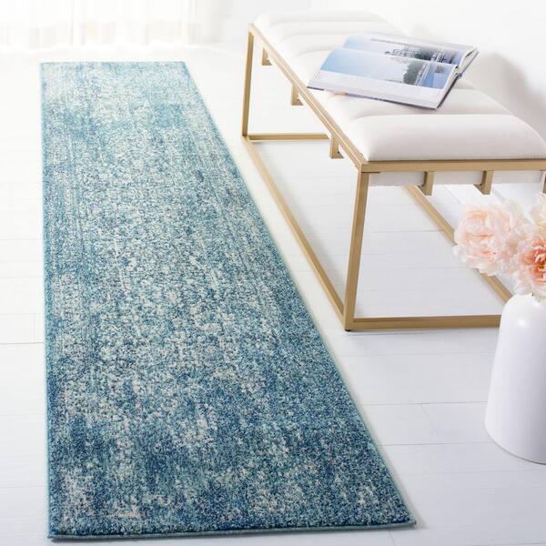 Evoke Blue/Ivory 2 ft. x 17 ft. Distressed Border Medallion Runner Rug