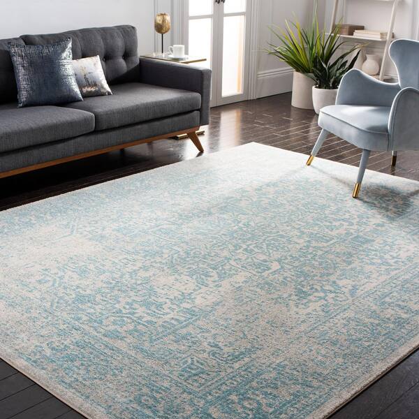 Evoke Ivory/Aqua 9 ft. x 12 ft. Distressed Border Medallion Area Rug