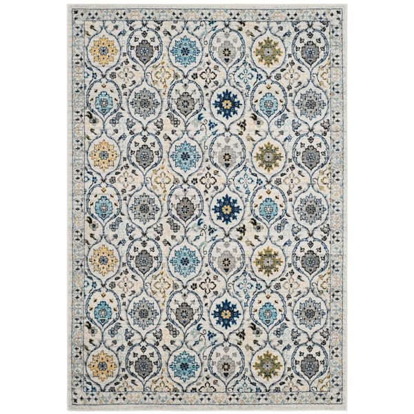 Evoke Ivory/Blue 4 ft. x 6 ft. Border Distressed Geometric Area Rug